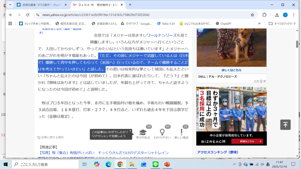 操作例:ブラウザで文字列選択