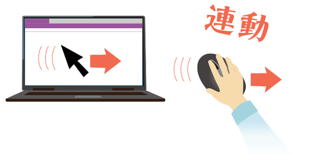 マウスを動かすと、パソコン画面上のカーソルが連動して動きます。
