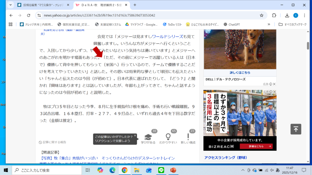 *「Ctrlキー」 + ホイールを下から上に回転 ⇒ 画面を拡大